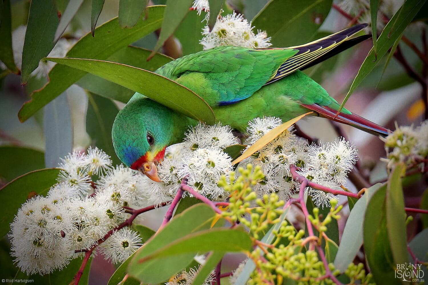 In the podcast I mentioned that the Swift Parrot was an endling, but I misspoke. An endling is the last individual of a species.[^ It’s also a game in which you play as the last fox mother.] The Swift Parrot is, I meant to say, critically endangered. There are just 750 estimated to be remaining in the wild, and “unless the threats facing the species are rapidly assessed, and its habitat restored, there is a high likelihood the parrot will become extinct over the next 20 years” (Zoos Victoria).