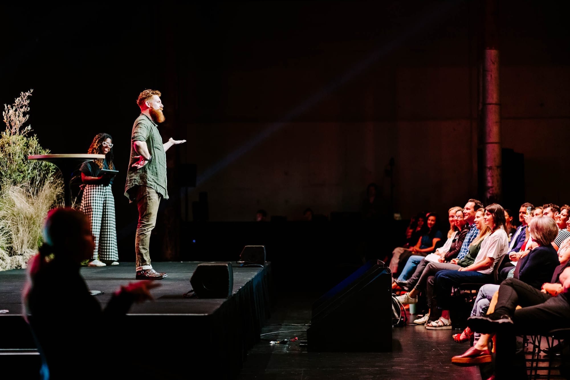 But if in our conversations we decide that slides would be apt, Jason’s strong preference is to run it from his own MacBook Pro from the stage. This is so that he can move through slides asynchronously, without any technical issues.